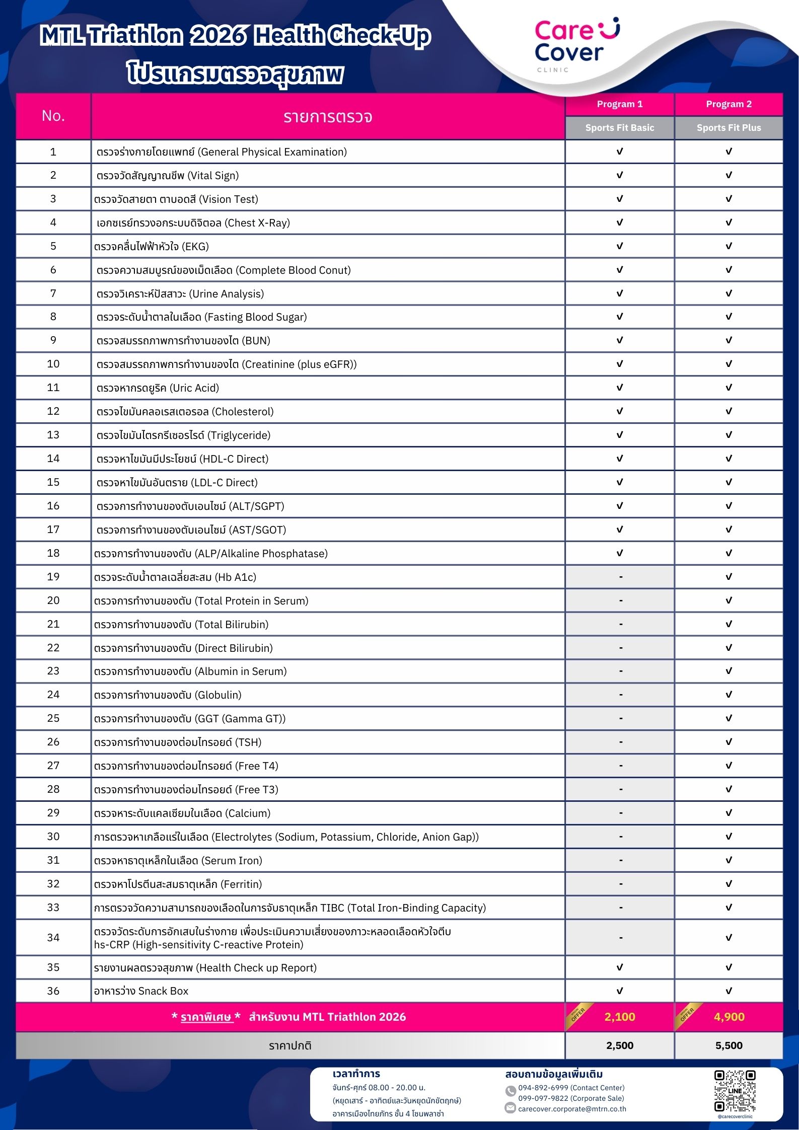 ระยะเวลาการใช้คูปองตรวจสุขภาพ: Code ที่ได้รับสามารถใช้ได้ตั้งแต่วันนี้ – 30 ธันวาคม 2569 Code นี้ไม่สามารถขยายเวลาในการใช้บริการได้ ทางคลินิกขอสงวนสิทธิ์งดให้บริการกรณี Code หมดอายุและไม่มีนโยบายคืนเงิน